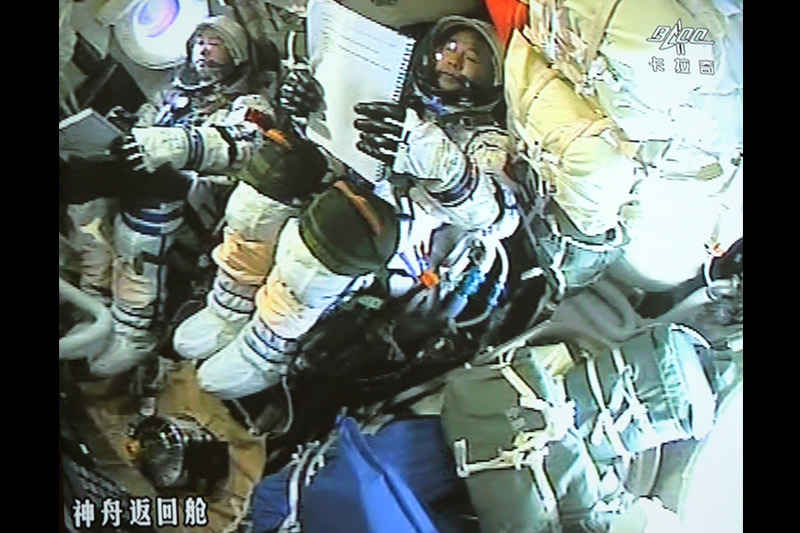 這是2016年11月18日在北京航天飛行控制中心大屏幕拍攝的神舟十一號(hào)飛船返回艙內(nèi)的畫(huà)面。2016年11月18日13時(shí)59分,神舟十一號(hào)飛船返回艙在內(nèi)蒙古中部預(yù)定區(qū)域成功著陸,執(zhí)行飛行任務(wù)的航天員景海鵬、陳冬身體狀態(tài)良好,天宮二號(hào)與神舟十一號(hào)載人飛行任務(wù)取得圓滿(mǎn)成功。