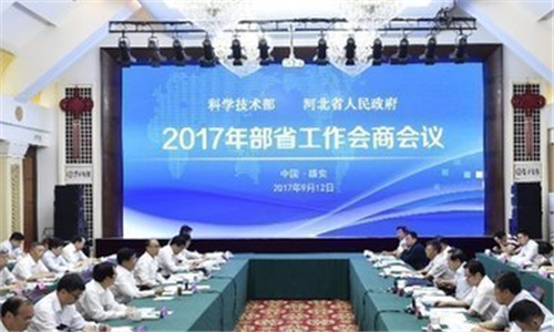科學技術部、河北省2017年部省工作會商會議12日在雄安新區(qū)召開。全國政協(xié)副主席、科技部部長萬鋼,河北省委書記、省人大常委會主任趙克志在會議上分別作重要講話。河北省省長許勤主持會議。