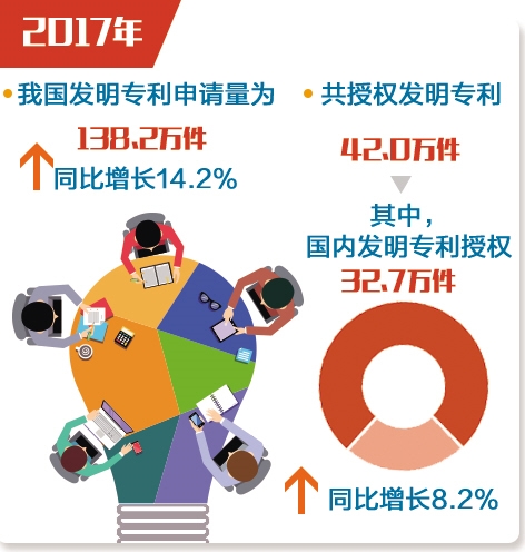近日,國家知識產權局發(fā)布了2017年我國發(fā)明專利有關情況和企業(yè)排名。數(shù)據(jù)顯示,2017年,我國發(fā)明專利申請量為138.2萬件,同比增長14.2%。共授權發(fā)明專利42.0萬件,其中,國內發(fā)明專利授權32.7萬件,同比增長8.2%。專利事業(yè)迸發(fā)出量質齊升的澎湃動力,從知識產權大國邁向知識產權強國的步伐更加堅實有力。