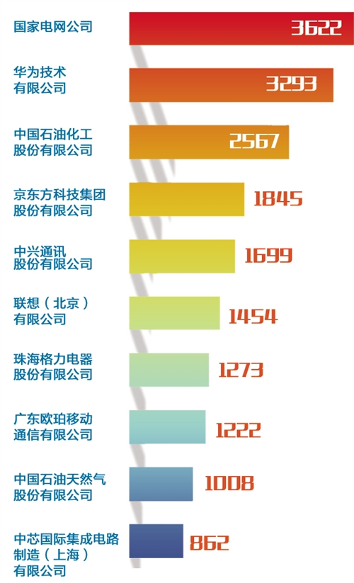 此外,作為研發(fā)密集型企業(yè)的代表,中芯國際集成電路制造(上海)有限公司也憑借授權862件發(fā)明專利躋身十強。“這表明企業(yè)只要重視創(chuàng)新,加大專利保護和運用,也能后來居上。”蘇平說。