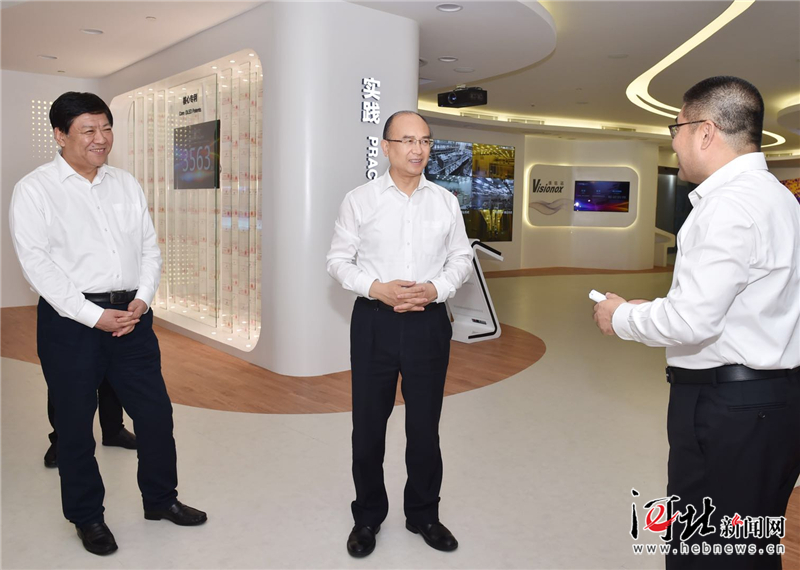 5月17日上午,省長許勤深入廊坊市部分高新技術(shù)企業(yè)進行調(diào)研。這是許勤在維信諾(固安)公司是維信諾科技股份有限公司旗下全資子公司,詳細了解企業(yè)創(chuàng)新成果。記者孟宇光攝