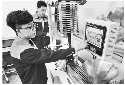 近日,文安智能電網產業園北京北化高科項目實驗室內,工作人員通過吹膜試驗機對產品進行技術指標測試。近年來,圍繞承接京津地區功能疏解和產業外溢,借勢協同發展,文安縣不斷推動產業向高端、智能、綠色轉型升級,加快實施一批環保節能和新材料研發生產項目,支持鼓勵企業建立自主研發團隊,設立研發中心,打造環保節能設備和新材料產業基地。新華社發