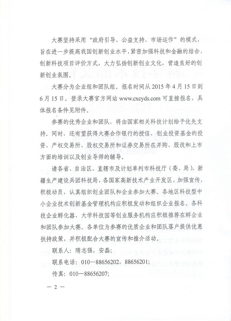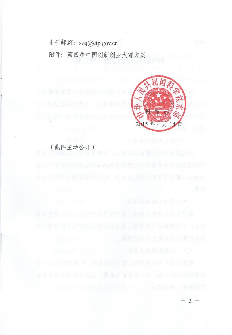 科技部關于舉辦第四屆中國創新創業大賽的通知